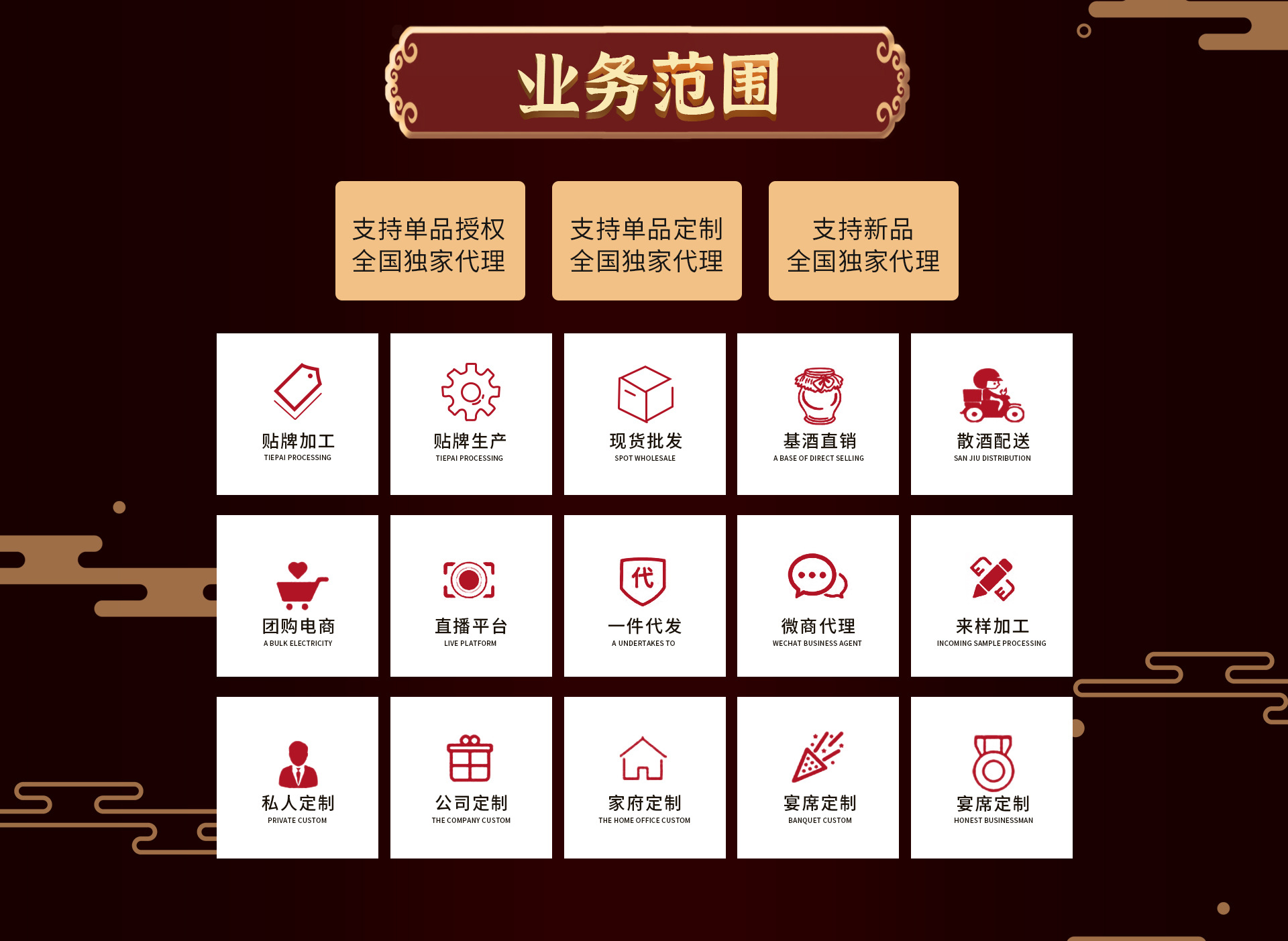 主营产品:白酒; 酱香型白酒; 批发白酒; 粮食酒; 零售白酒;
